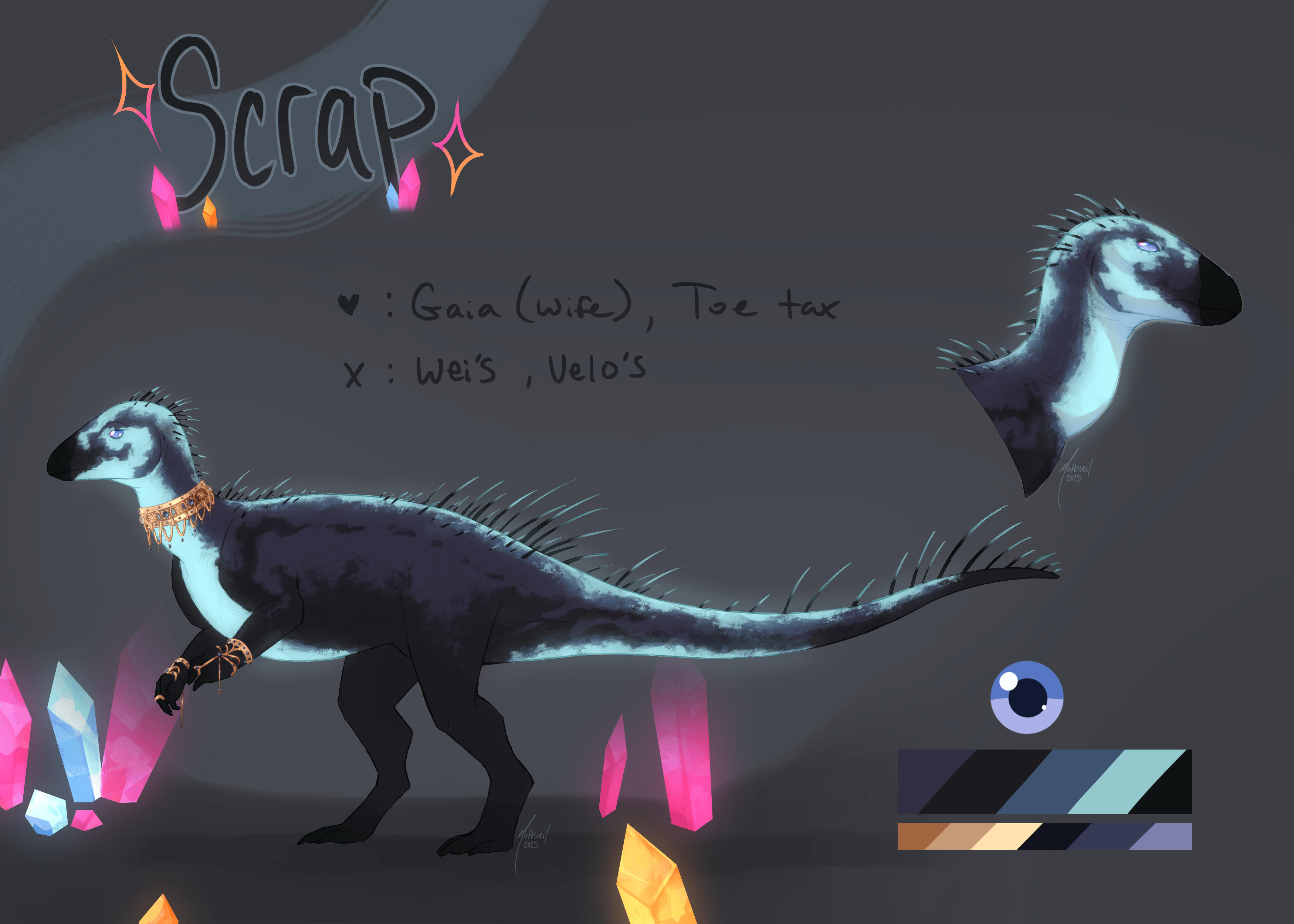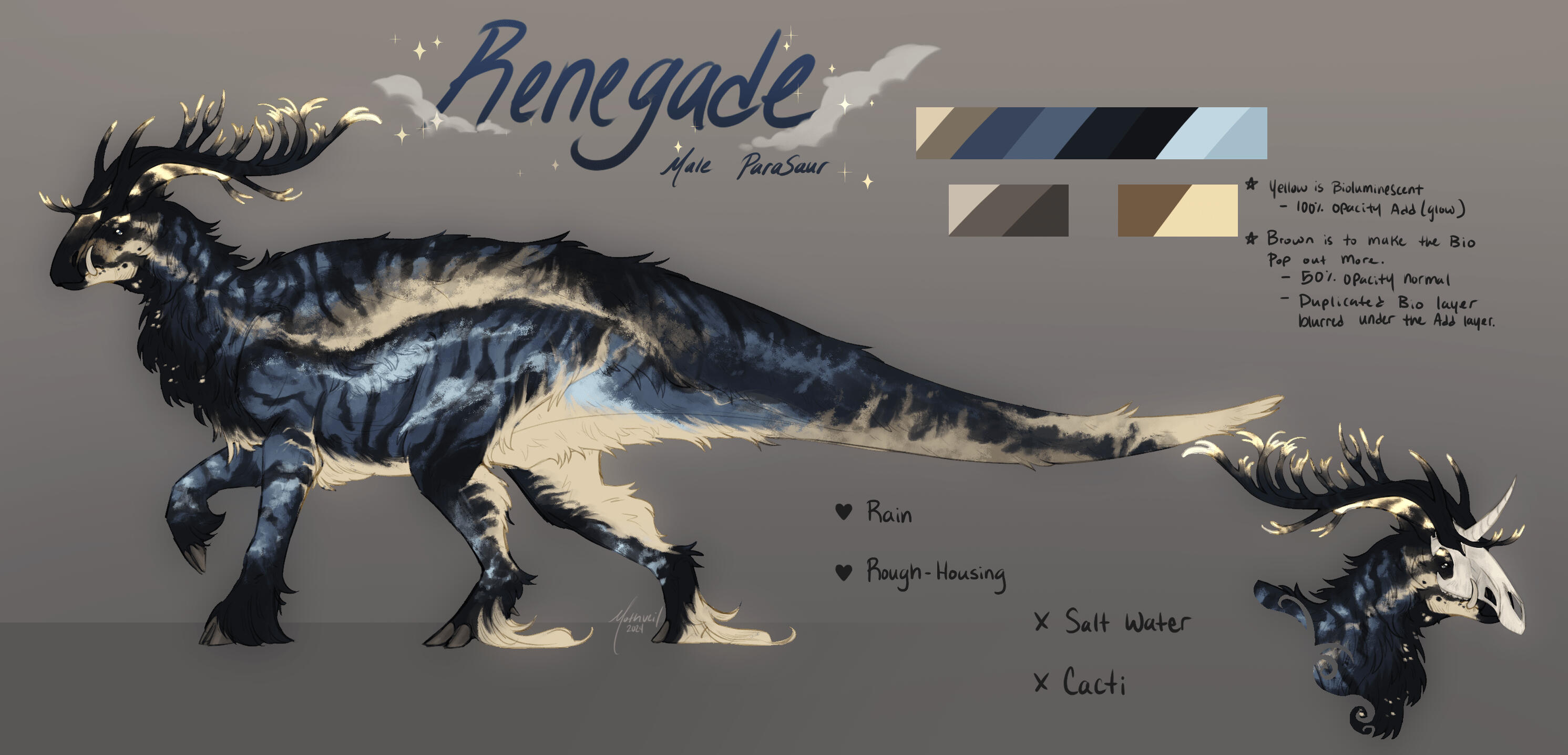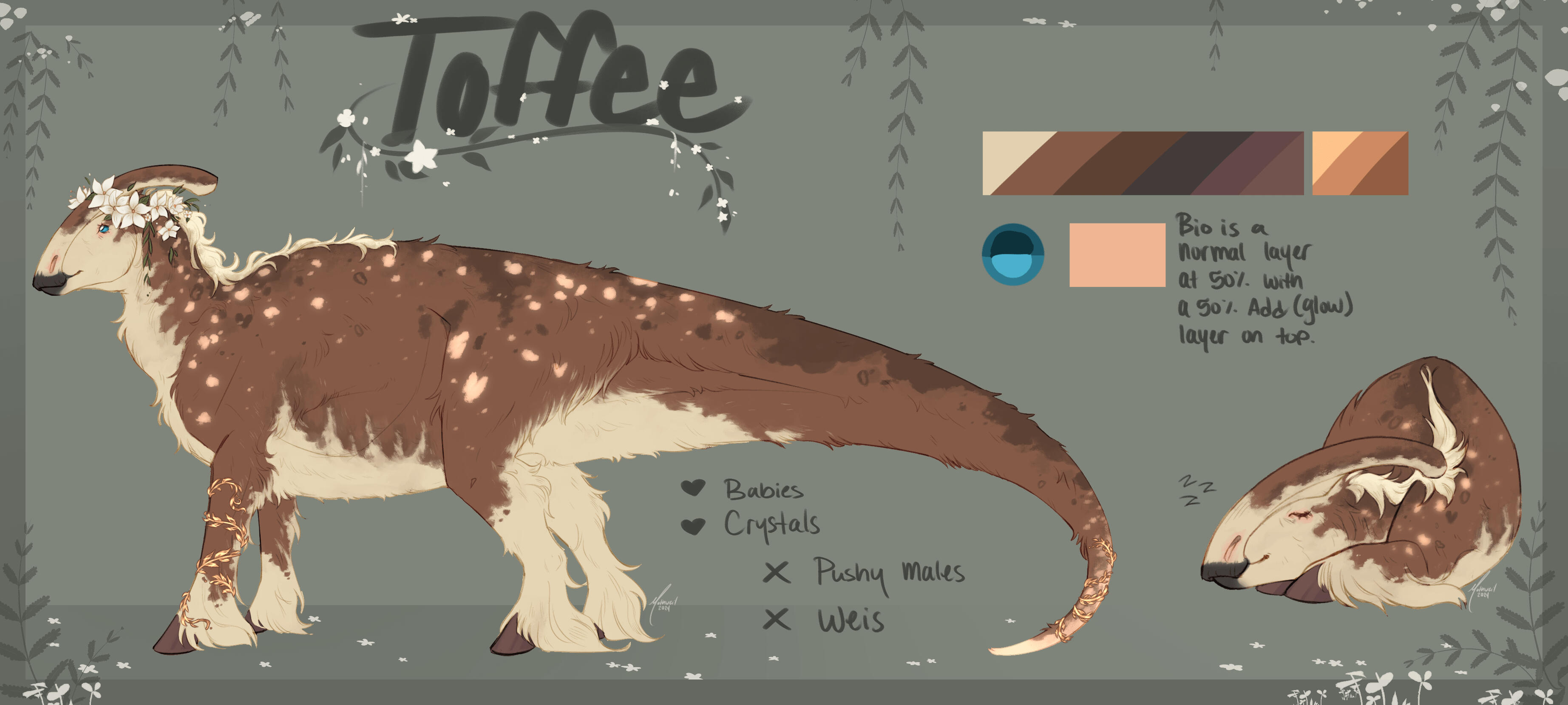 - Includes Likes and Dislikes, decorations around the reference sheet, both sides of the character, and one chibi in addition to the standard reference sheet.