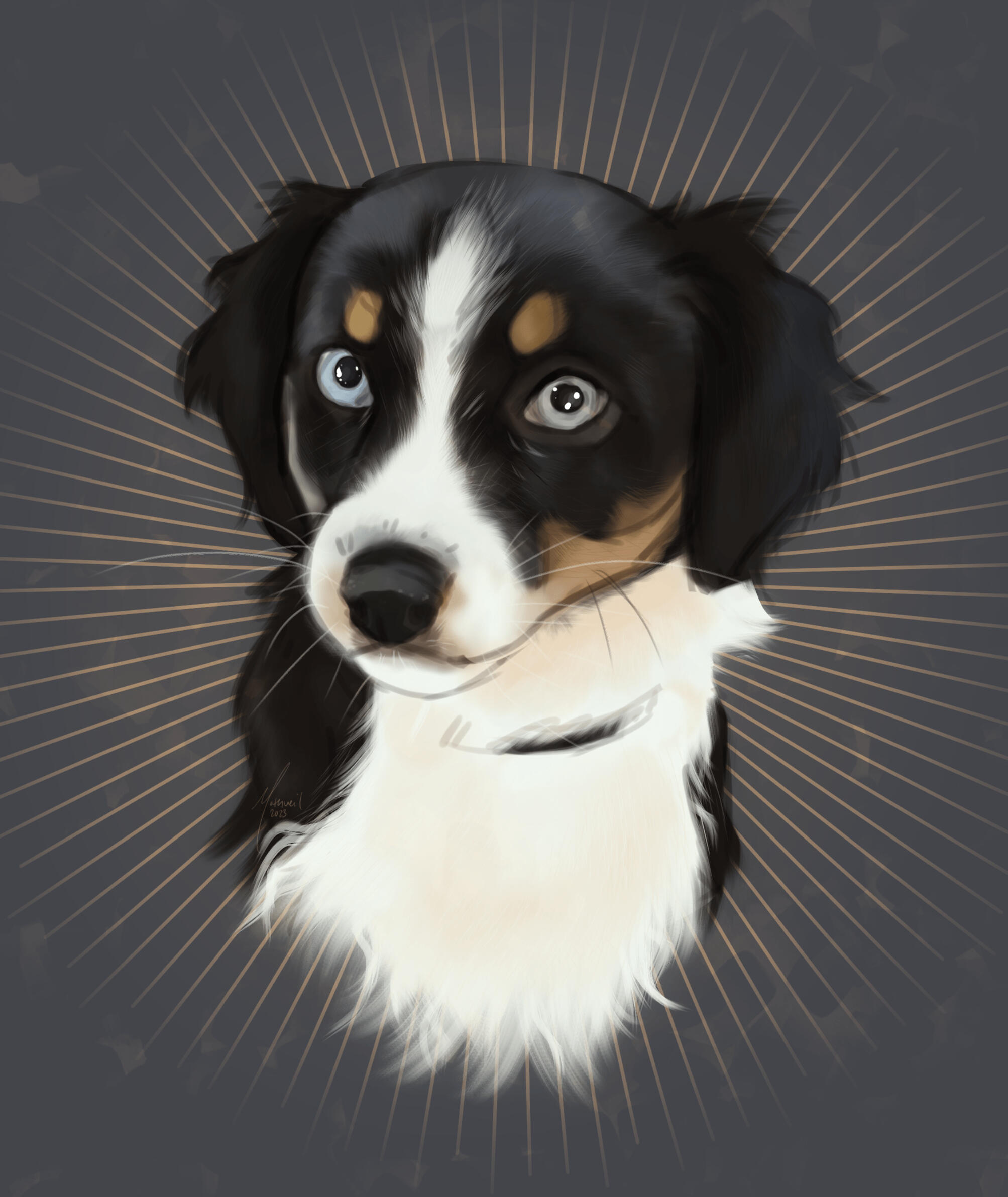 Neatly painted portrait of a pet based on photography. Can be used as a memorial. Price varies based on complexity.Can be on a physical canvas, price will be adjusted to account for supplies and shipping. Physical pet portraits will greatly vary in pricing due to the wide range of supplies required, what kind of canvas is wanted, shipping, etc.